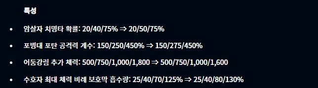 그렇게 큰 변화는 없으며 현재 조금 부진한 특성들을 상향시켰습니다.