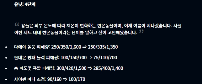 이렇게 이번 시간에는 롤토체스 12.20 패치노트에 대해서 정리해보았습니다. 용술사 카르마덱은 카르마가 너프됨으로써 이제는 무조건 용술사 카르마로 가는 것은 다소 위험할 수도 있겠네요. 카르마가 초반에 막 뜨는 경우가 아니라면 말이죠. 그 외에도 시오유 사이펜덱도 시오유가 너프됨으로 고려해봐야 하겠고, 개인적으로는 스웨인을 활용한 덱들이 조금 더 자주 보이지 않을까 싶습니다. 그러면 이번 포스팅은 여기서 마무리하도록 하고 다음번에는 또 다른 글로 다시 찾아오도록 하겠습니다. :)