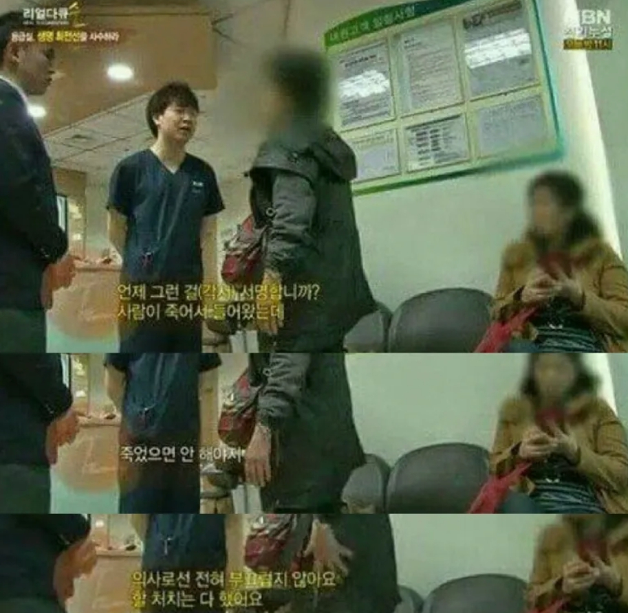 거기에 심폐소생술은 흉부에 압박을 가할 때 흉곽이 5~6cm나 들어가도록 눌러야되는데, 본인이 본인 흉곽을 눌러보면 알겠지만 5~6cm 깊이로 압박되려면 어마어마한 힘이 가해져야 합니다. 따라서 CPR을 하면 흉부에 멍이 드는 것은 당연하고, 늑골이 골절되는 경우도 흔합니다.