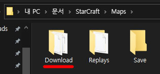 문서 - StarCraft - Maps - Download 폴더에 다운받은 메이플 운빨 디펜스 파일을 넣어줍니다. 이후 스타크래프트를 실행하면 해당 맵으로 방을 생성할 수 있습니다.