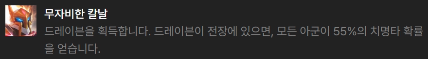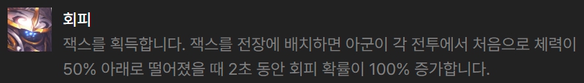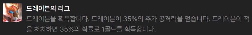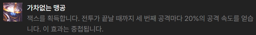 영웅 증강체의 경우 드레이븐의 리그(드레이븐), 무자비한 칼날(드레이븐), 가차없는 맹공(잭스), 회피(잭스)가 나오면 좋습니다.