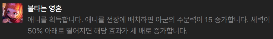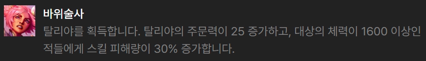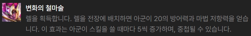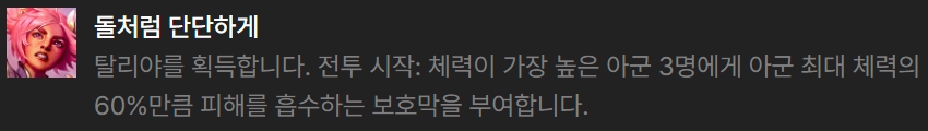 영웅 증강체로 선택하기 좋은 것은 반사 방패(애니), 불타는 영혼(애니), 변화의 철마술(렐), 바위술사(탈리야), 돌처럼 단단하게(탈리야)입니다.