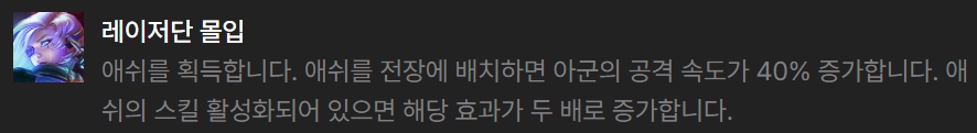 애쉬 리롤덱에 좋은 영웅 증강체는 레이저단 몰입(애쉬), 부대 집중(애쉬), 고양(리신), 수호자 영혼(말파이트), 흡수의 바람(야스오), 추방자의 기백(야스오)입니다.