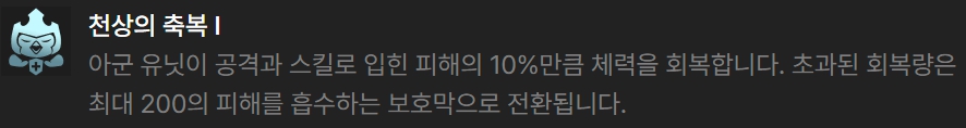 리롤덱인만큼 상점 관련 증강체가 좋으며, 애쉬에게 결투가 상징을 줘야 더 빨리 강해지는 타이밍이 옵니다. 따라서 상징 특성 상징 관련 증강체도 추천드리며, 그 외에 전투 관련 증강체는 천상의 축복, 재생의 바람, 사냥의 전율 등이 좋습니다.