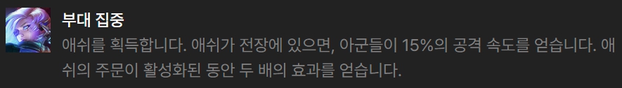 애쉬 리롤덱에 좋은 영웅 증강체는 레이저단 몰입(애쉬), 부대 집중(애쉬), 고양(리신), 수호자 영혼(말파이트), 흡수의 바람(야스오), 추방자의 기백(야스오)입니다.