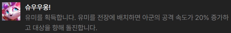 유미에게 푸른 파수꾼, 거인 학살자, 보석 건틀릿을 맞춰주는 것을 최우선으로 하고, 이후 탱커형 아이템의 경우 3성이 먼저 붙을 것 같은 쪽에 몰아줍니다.