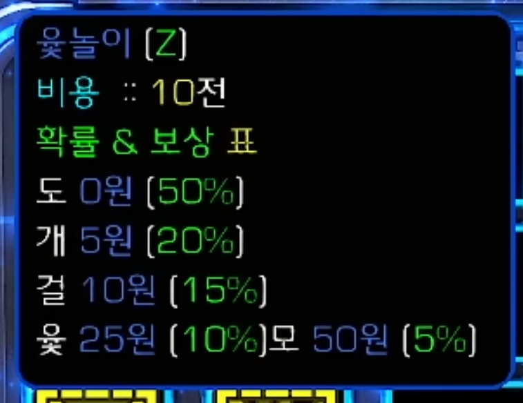 또한 윷놀이 및 사다리타기 미니게임이 있어서 운이 좋다면 이걸 통해 돈을 벌 수도 있습니다.