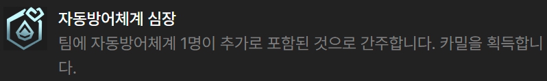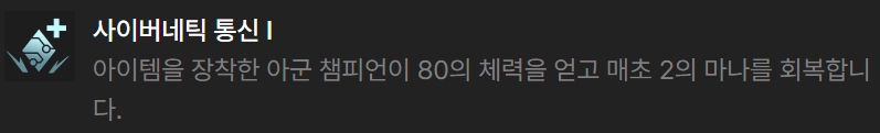 그 외의 증강체로는 방패대, 자동방어체계 관련 증강체나 상점 관련 증강체가 어울리며, 전투 관련 증강체로는 경량급, 초월이 어울립니다. 그 외에도 사이버네틱 통신, 외피, 재생의 바람, 사냥의 전율, 천상의 축복같은 증강체도 무난합니다.