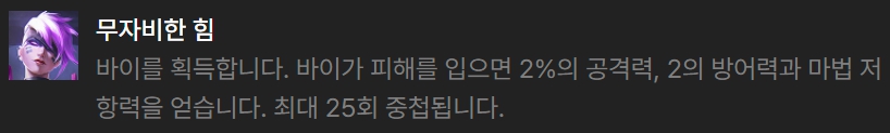 핵심 아이템은 카밀에게 피바라기, 무한의 대검, 거인의 결의를 주고, 바이에게는 태양불꽃 방패, 구원, 워모그의 갑옷을 주는 것입니다. 나머지 아이템들은 나중에 비에고에게 피바라기, 거인의 결의, 보석 건틀릿을 완성시켜주면 되겠습니다.