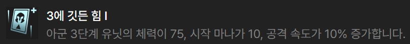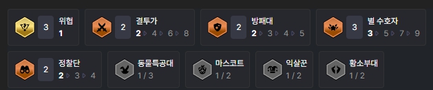 덱을 완성시키면 챙길 수 있는 특성은 위협(3), 결투가(2), 방패대(2), 별 수호자(3), 정찰단(2)입니다.