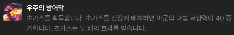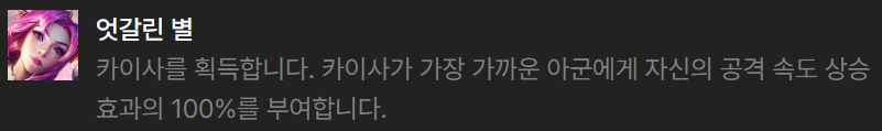 위협 카이사덱에 좋은 영웅 증강체는 다중 사격(카이사), 엇갈린 별(카이사), 나눔의 미덕(닐라), 중무장 아르마딜로(람머스), 우주의 방어막(초가스), 얼어붙은 땅(벨코즈)입니다.
