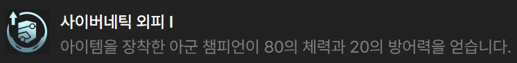 3성작을 노리면서 가는 덱이기 때문에 상점 관련 증강체들이 베스트이며, 그 외에는 3에 깃든 힘 증강체가 좋습니다. 천상의 축복, 사냥의 전율같은 무난한 전투 관련 증강체들도 괜찮습니다.