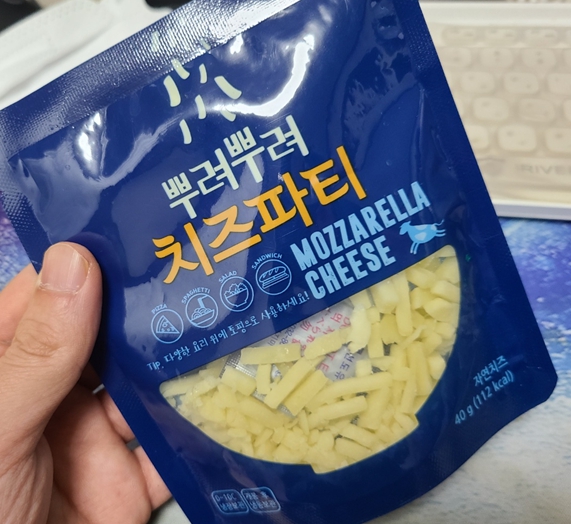 구매해두었던 스트링치즈나 피자치즈, 혹은 둘 다를 넣어준 뒤 전자레인지에 적당히 돌립니다. 얼마나 돌려야 되는지에 대해서는 치즈들이 잘 녹을 정도까지이며, 보통 1분이면 대부분 녹습니다.