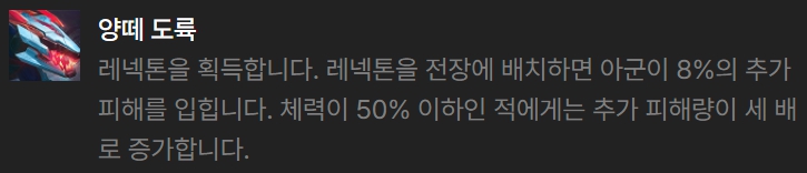 8소라카 싸움꾼덱에 어울리는 영웅 증강체로는 고양(리신), 양떼 도륙(레넥톤), 업그레이드: 광란(소라카), 권투 교습(바이), 융화(소라카), 회피(잭스)입니다.