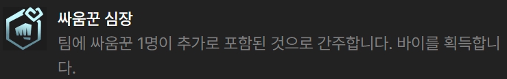 덱을 완성시키면 기본적으로 싸움꾼이 7마리밖에 모이지 않아 싸움꾼(6) 효과만을 받게 됩니다. 따라서 증강체를 통해 싸움꾼 상징 혹은 영혼이 강제적으로 필요한 덱입니다.