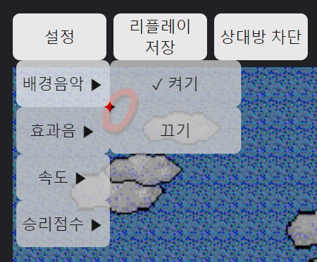 리플레이: "리플레이 저장" 버튼(게임 화면 상단에 나타납니다)을 누르면, 게임 시작부터 해당 버튼을 누른 순간까지가 리플레이 파일로 저장됩니다. 저장한 리플레이 파일을 리플레이 재생기로