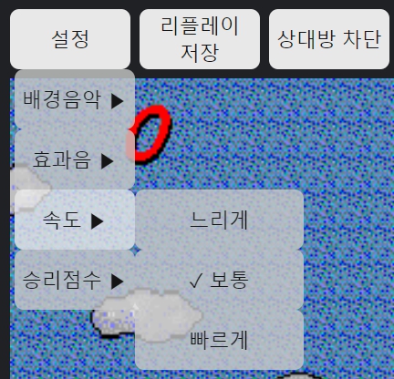 리플레이: "리플레이 저장" 버튼(게임 화면 상단에 나타납니다)을 누르면, 게임 시작부터 해당 버튼을 누른 순간까지가 리플레이 파일로 저장됩니다. 저장한 리플레이 파일을 리플레이 재생기로
