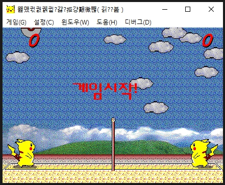 위의 파일을 받아준 뒤 압축을 풀면 나오는 피카츄 배구 프로그램을 실행시켜주면 됩니다. 기본적인 조작키는 키보드의 방향키 상하좌우(↑↓←→)키와 파워샷이 엔터이며, 2인용으로 진행하는 경우 두 번째 플레이어의 조작키는 위가 r, 아래가 f, 왼쪽이 d, 오른쪽이 g이며 파워샷이 z키입니다.