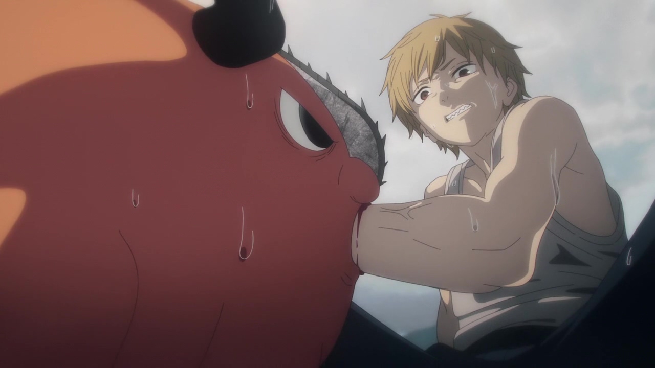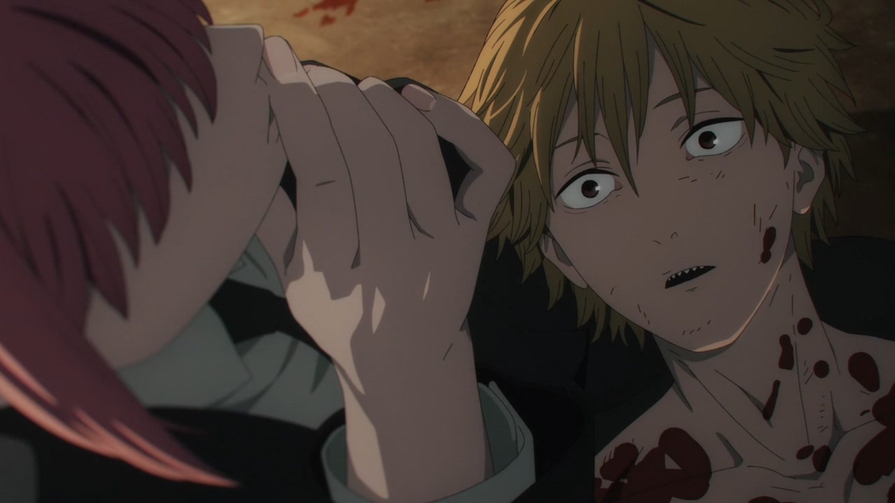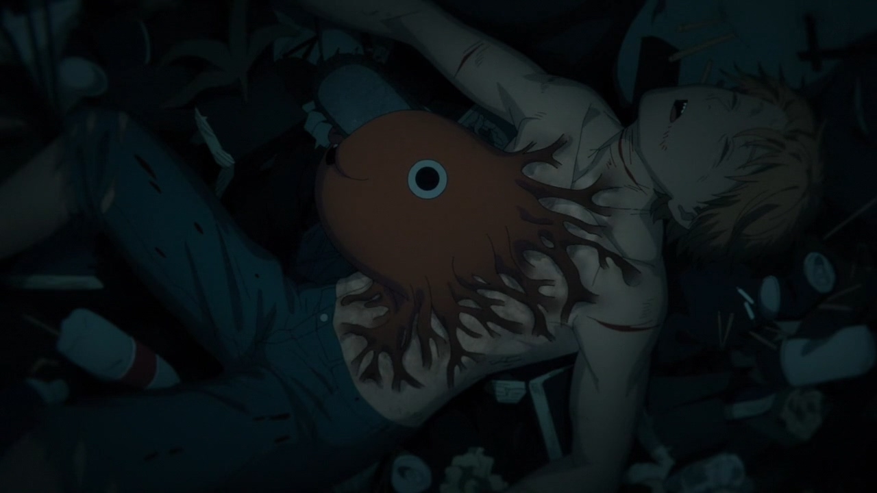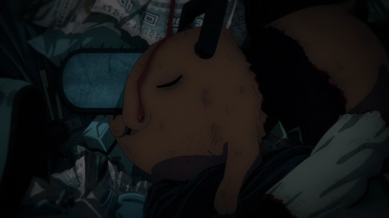 여기서 덴지는 "너도 죽는거냐"라며 갑자기 아버지가 목을 메고 죽은 것을 떠올립니다. 그러면서 "악마는 피를 마시면 상처가 낫는다고 들은 적 있어. 죽기 싫으면 물어"라 하고 포치타가 경계를 하면서도 팔을 물어 피를 취하자 "이건 계약이다, 너를 살려줄 테니까 나 좀 살려봐"라며 말합니다. 이후 포치타와 힘을 합쳐 악마들을 사냥하고, 빚쟁이들에게 데블헌터로 고용해달라는 제안을 합니다. 이때부터 덴지의 데블헌터의 삶이 시작된 셈이죠.