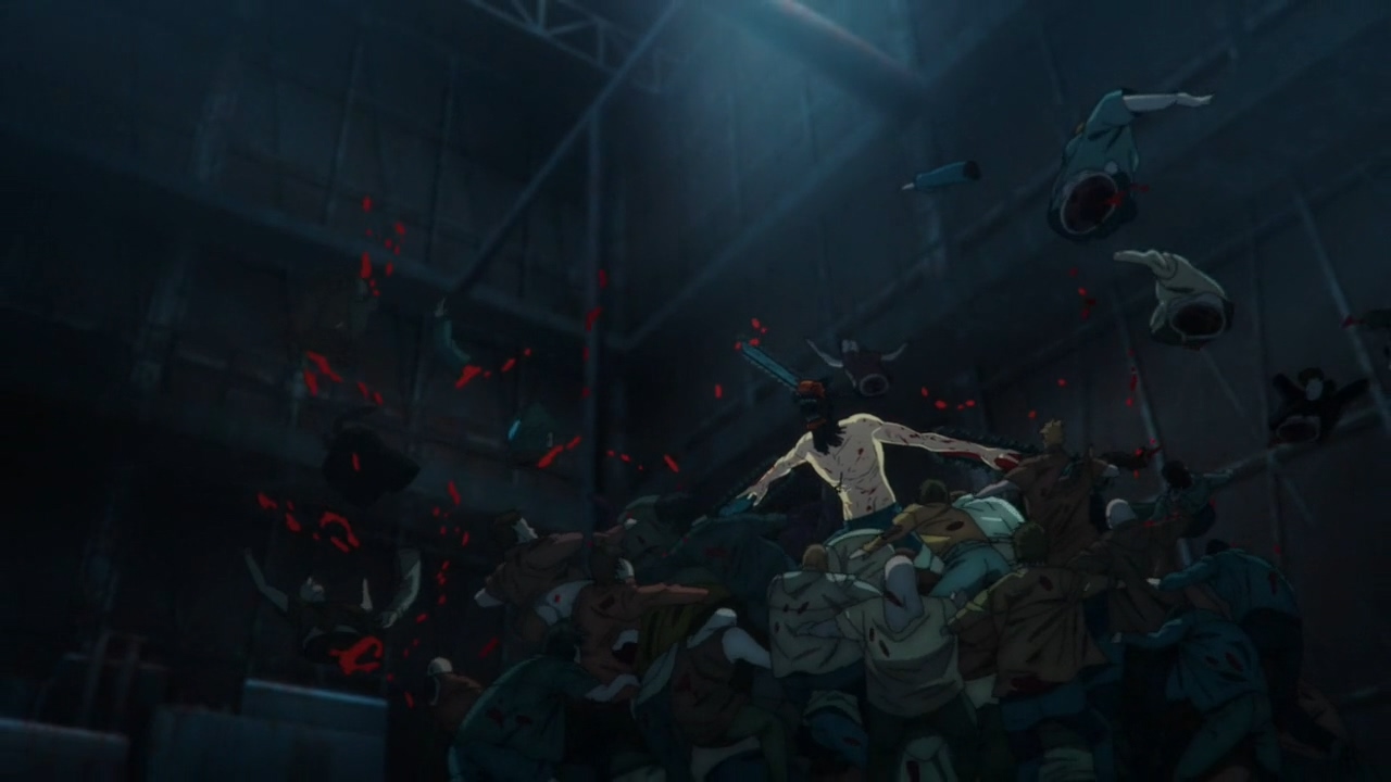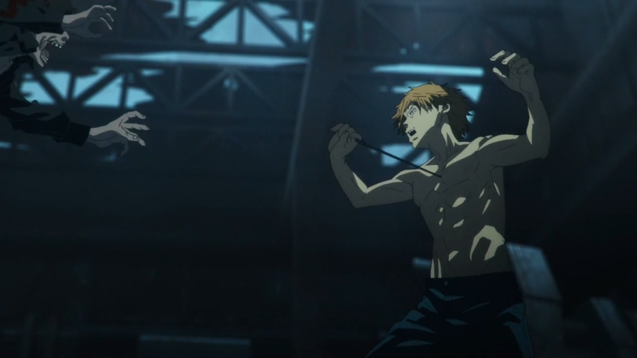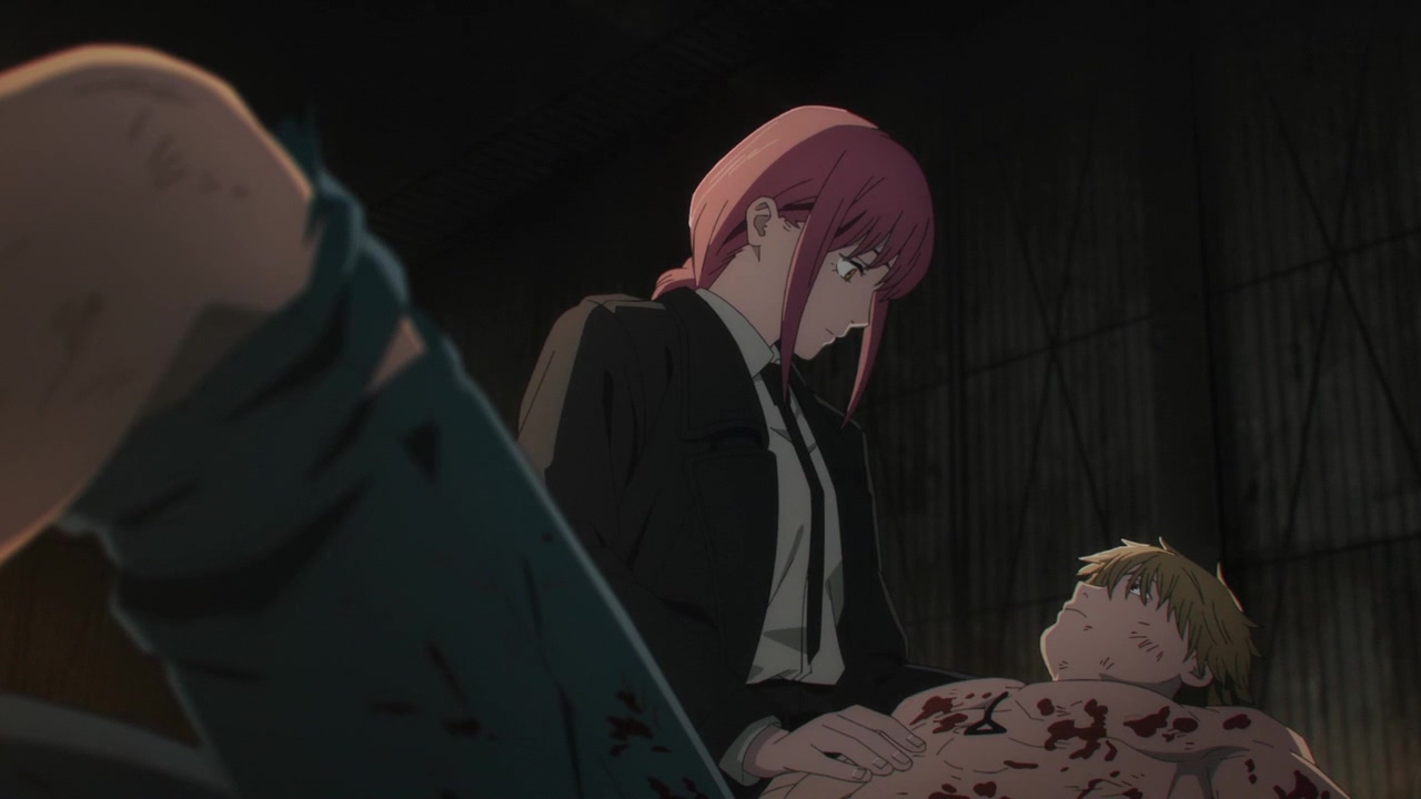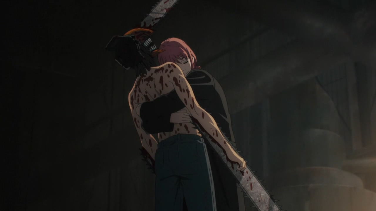 여기서 덴지는 "너도 죽는거냐"라며 갑자기 아버지가 목을 메고 죽은 것을 떠올립니다. 그러면서 "악마는 피를 마시면 상처가 낫는다고 들은 적 있어. 죽기 싫으면 물어"라 하고 포치타가 경계를 하면서도 팔을 물어 피를 취하자 "이건 계약이다, 너를 살려줄 테니까 나 좀 살려봐"라며 말합니다. 이후 포치타와 힘을 합쳐 악마들을 사냥하고, 빚쟁이들에게 데블헌터로 고용해달라는 제안을 합니다. 이때부터 덴지의 데블헌터의 삶이 시작된 셈이죠.