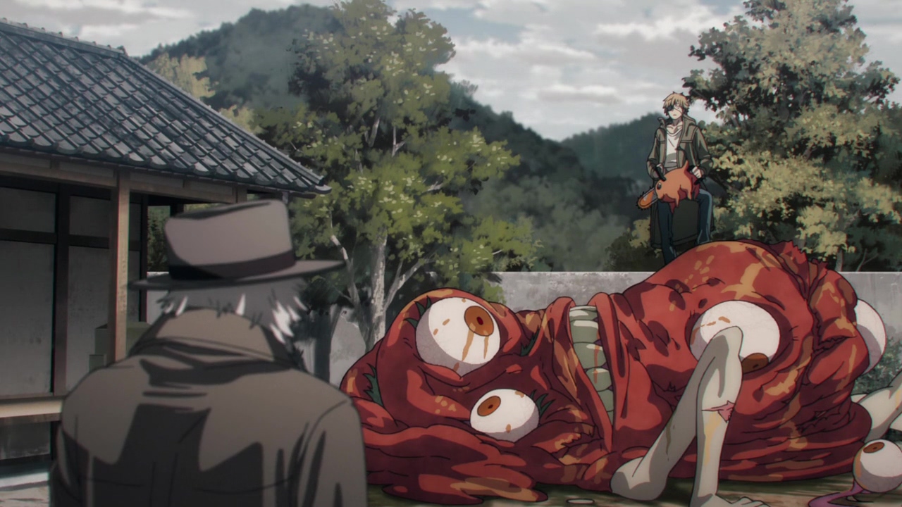 여하튼 또 갑자기 악마가 나타났다며 덴지를 호출하고, 그렇게 같이 간 건물에서 갑자기 누군가가 뒤에서 덴지와 포치타를 함께 검으로 찌릅니다.