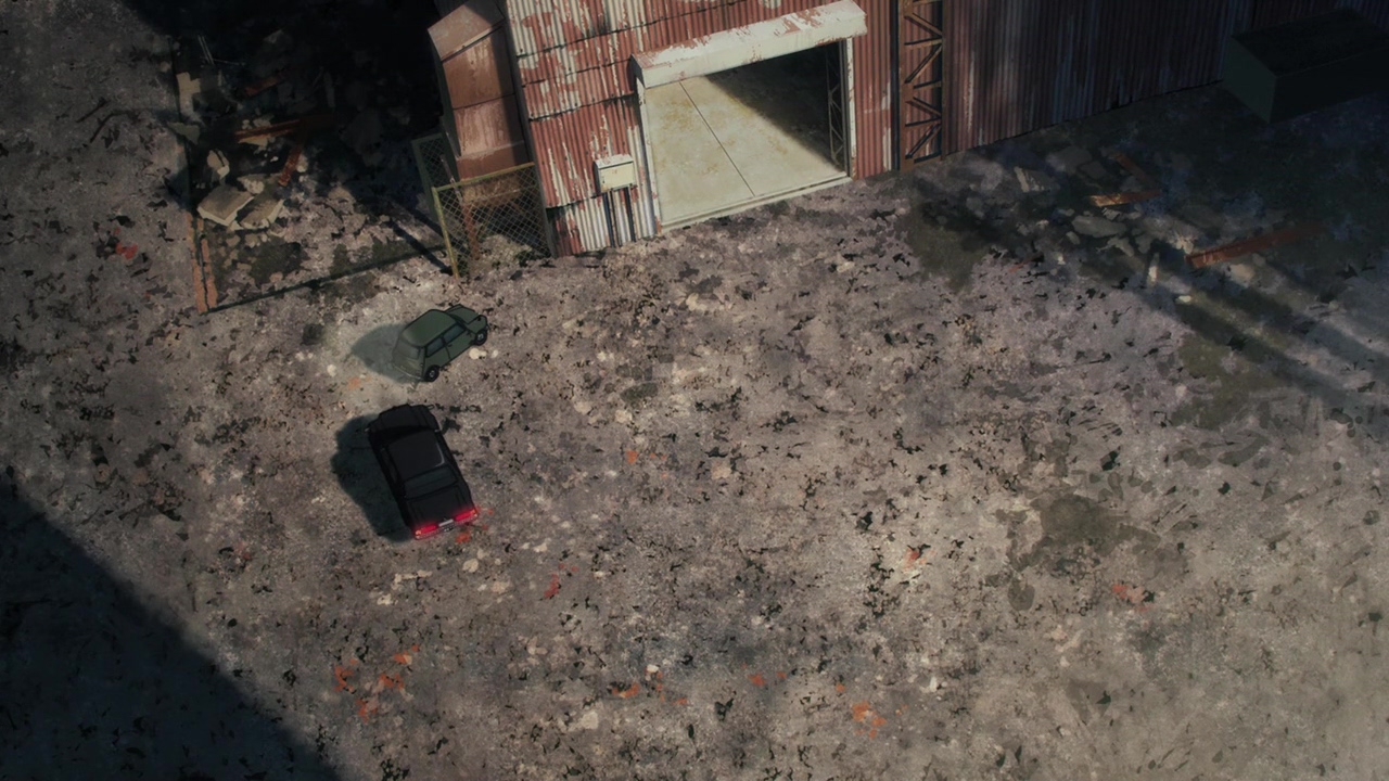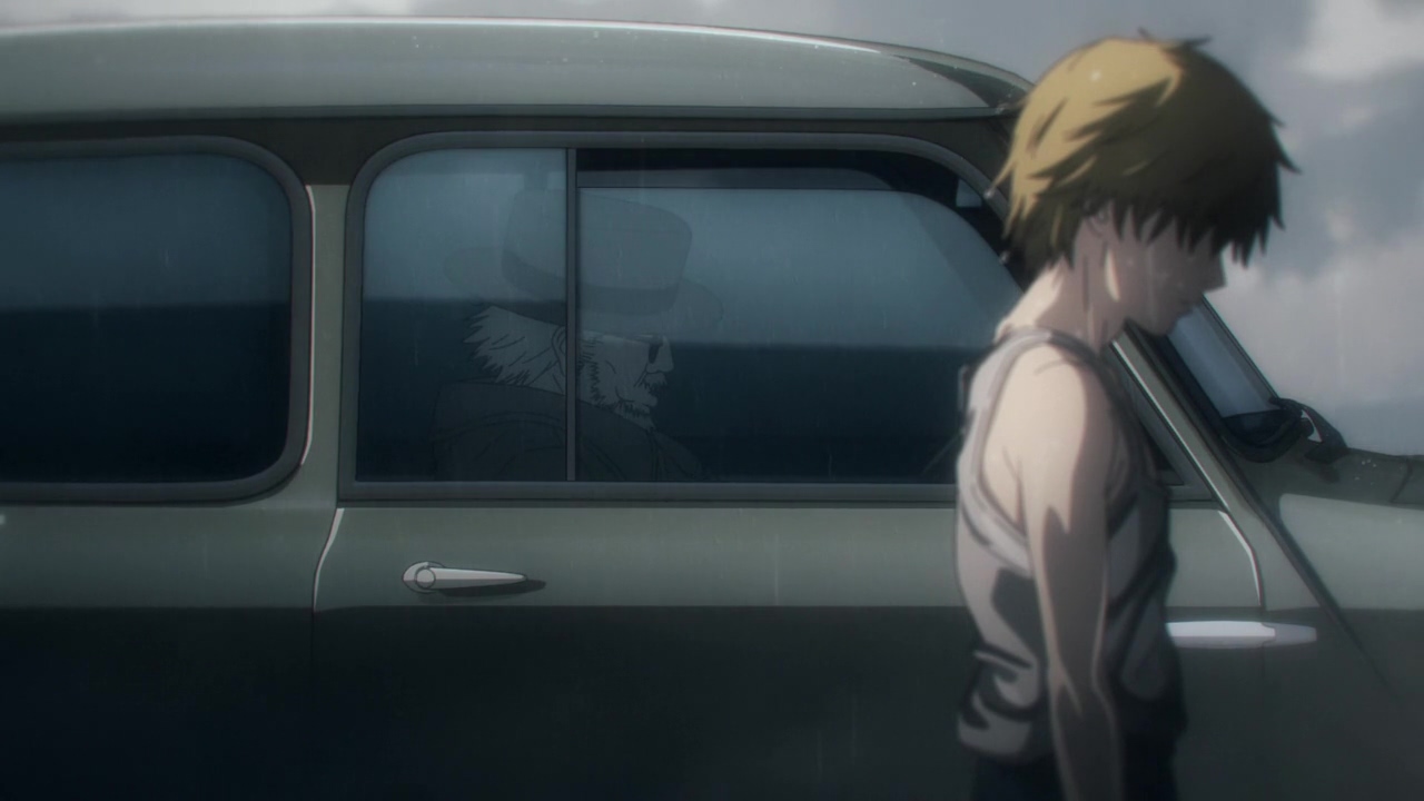 이어 다음날 낮, 한 차가 덴지가 있던 건물 앞에 서고, 세 명이 내립니다.
