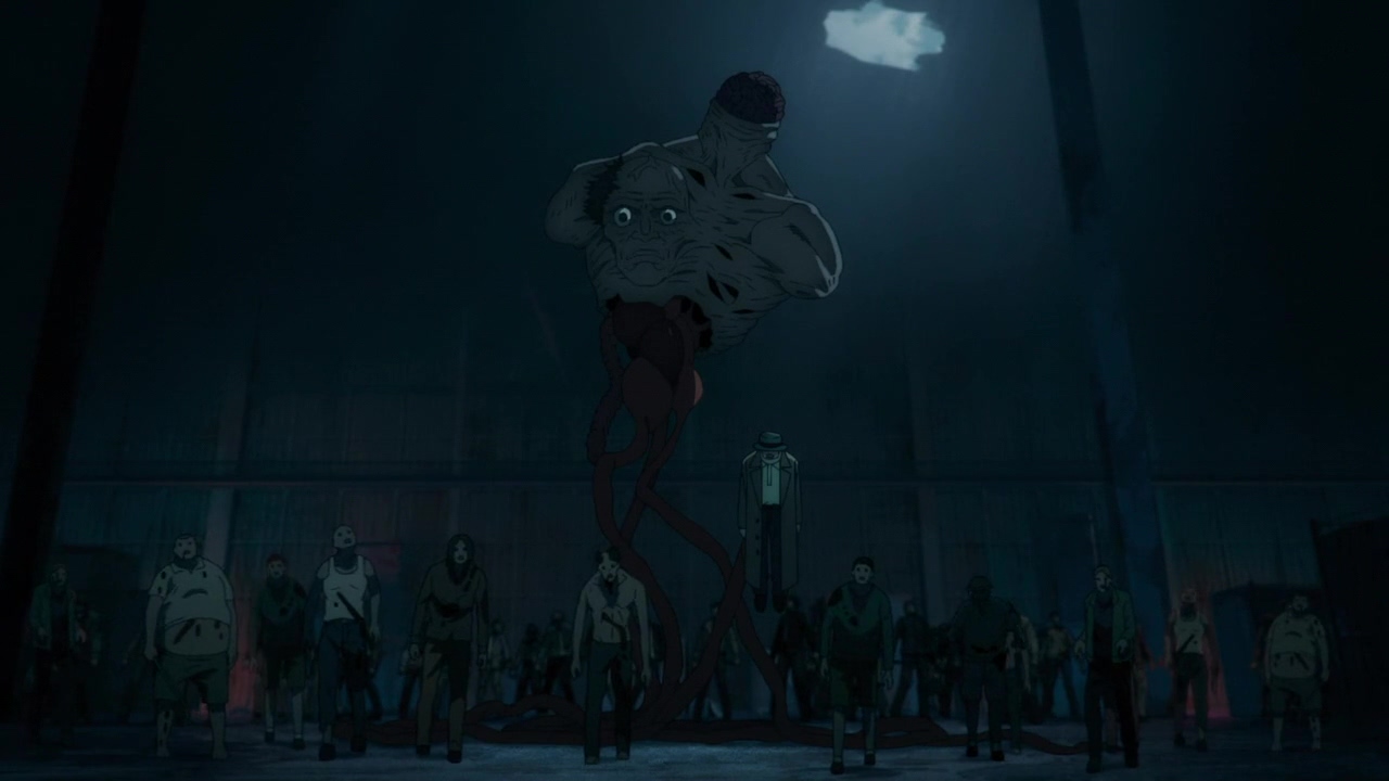 이어 좀비들이 다시 몰려오고 덴지는 가슴팍의 덴지의 꼬리를 잡아당깁니다. 그러나 금방 좀비들에게 둘러쌓이고, 좀비의 악마는 "아무리 그래도 잡아먹으면 죽겠지"라는 말을 합니다.