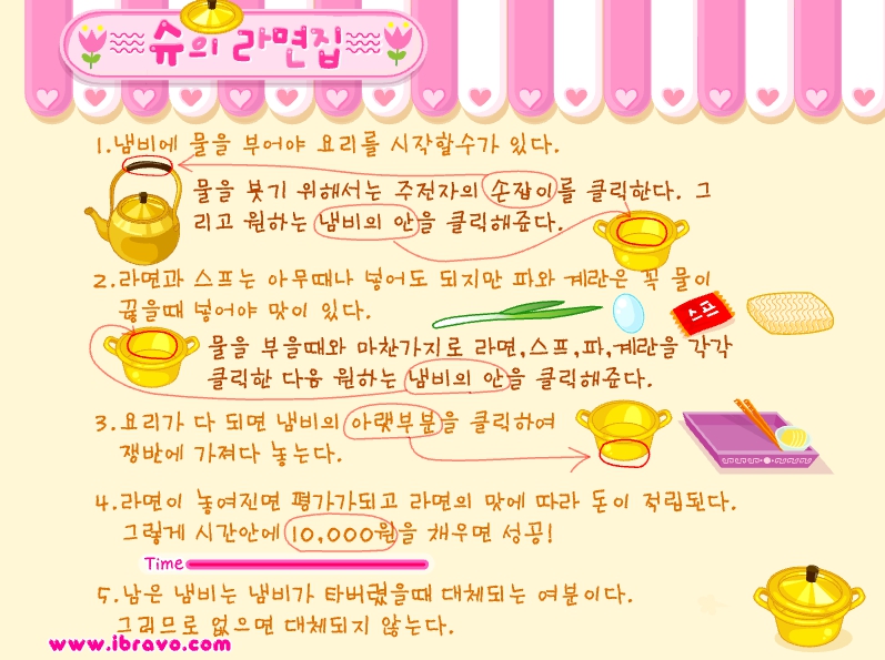 위의 링크를 클릭하여 들어가서 조금 내리면 슈의 라면집 게임을 할 수 있습니다.