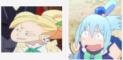 코노스바를 보다보면 종종 작화가 무너지는 경우를 자주 보게 됩니다. 이런 경우를 작붕이라고 말하는데요, 코노스바같은 경우에는 이런 경우들이 꽤나 많아서 작붕이라며 각지에서 캡쳐 사진들이 떠돌아다녔습니다. 그러나 알고 보니 작화진의 부족으로 대충 그리는 것이 아닌, 의도적으로 이렇게 그린다는 사실이 밝혀졌죠. 이러한 특유 작화는 애니메이션을 보는 사람들에게 호불호가 크게 갈리는데요, 옹호하는 측에서는 이런 류의 코미디 작품에는 괜찮다는 의견을 보이며 이런 작붕들이 어떻게 보면 작품에 더 잘 어울리고 재미있게 느끼게 한다고 주장하며 비판쪽에서는 원작 소설판의 예쁜 일러스트에서부터 접해온 사람들이 많은데 이러한 작화에 실망한다는 주장이죠. 여하튼 개인적으로는 이미지와 같은 작화가 항상 있는 것도 아니라서 별로 그렇게 크게 방해되지는 않았습니다.