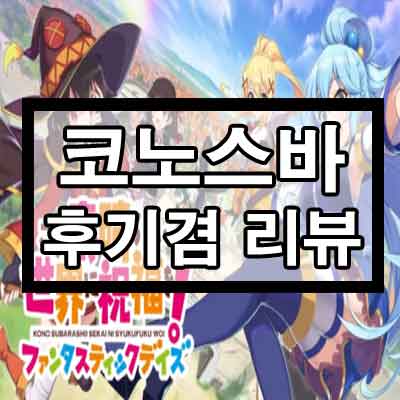 가벼운 마음으로, 웃으면서 본 애니메이션입니다. 이세계물이지만 코미디에 더 비중을 둔, 또한 어떻게 보면 주인공을 제외한 나머지 파티원들이 전부 여성이라 하렘 느낌이라고도 할 수 있겠네요. 다만 러브 코미디가 아니라 그냥 코미디인 만큼 누가 누굴 좋아하고 그런 장면은 전혀 나오지 않습니다. 왠지 기분이 꿀꿀하거나 심심할때 보면 굉장히 재미있게 볼 수 있는 애니메이션으로 안 본 사람들은 한 번쯤 보는 것을 추천드립니다. 여하튼 이번 포스팅에서는 코노스바를 소개해드리는 시간을 가져봤고, 여기서 마무리하도록 하겠습니다.