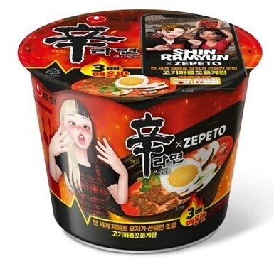 농심은 지난 달 신라면 신제품으로 기존 신라면보다 약 배 매운 라면인, 신제품 신라면 제페토 큰사발을 한정 출시했습니다. 제페토는 하나의 메타버스 플랫폼이며, 제페토 캐릭터를 신제품 표지에 이용하였습니다. 위의 이미지가 바로 그 캐릭터의 모습인데, 기존 신라면보다 3배 맵다는 이유 때문인지, 매워서 상기된 얼굴에 혀를 내밀고 있는 모습입니다.