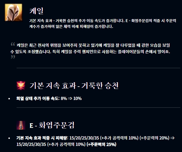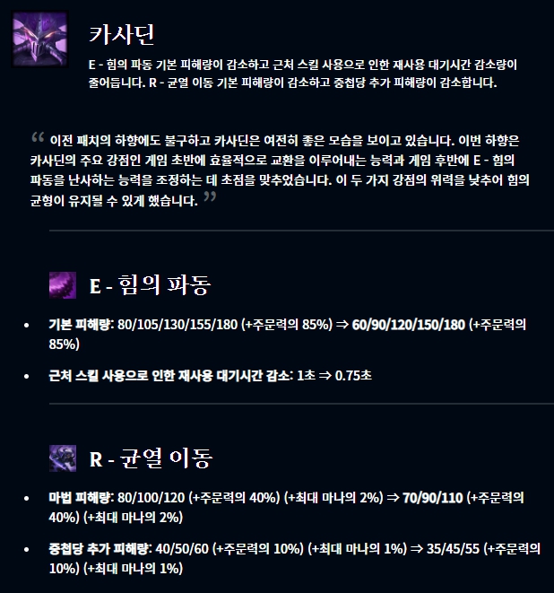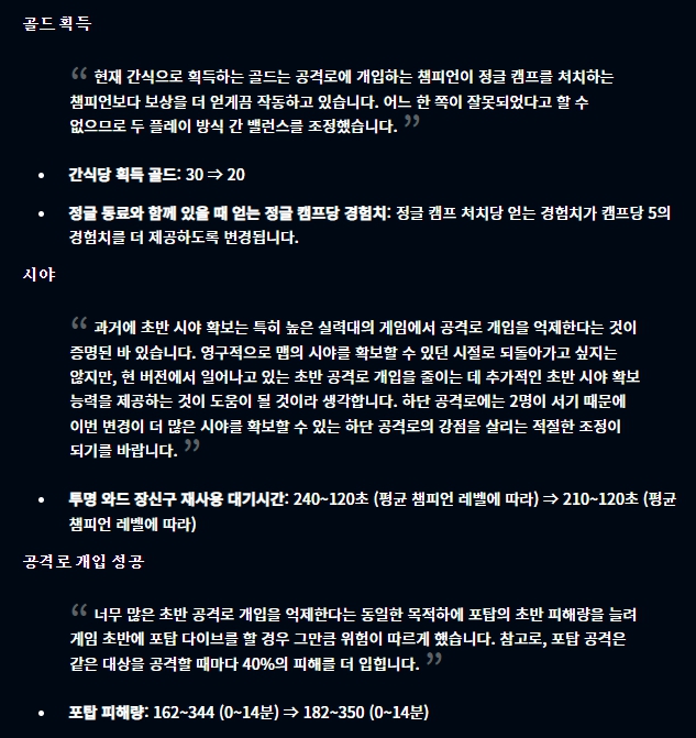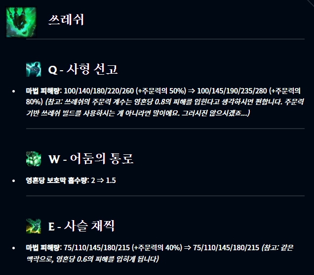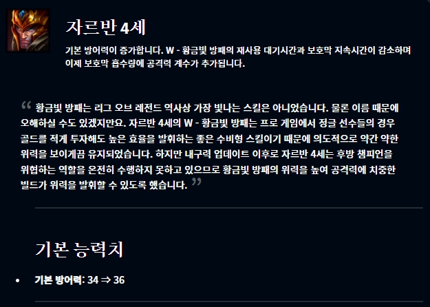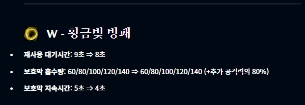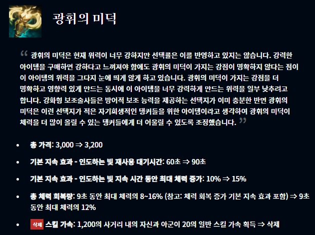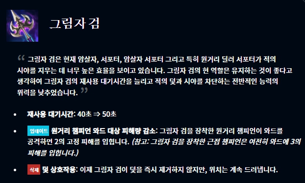 아이템 부분에서는 광휘의 미덕이 너프되었고, 그림자 검 역시 너프되었습니다.