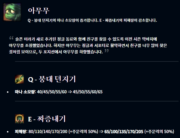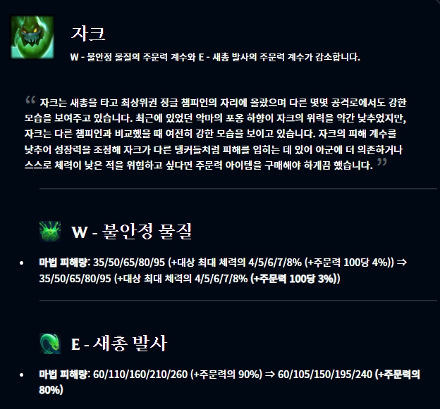 애니 아무무 카사딘 크샨테 자크가 너프되었습니다.