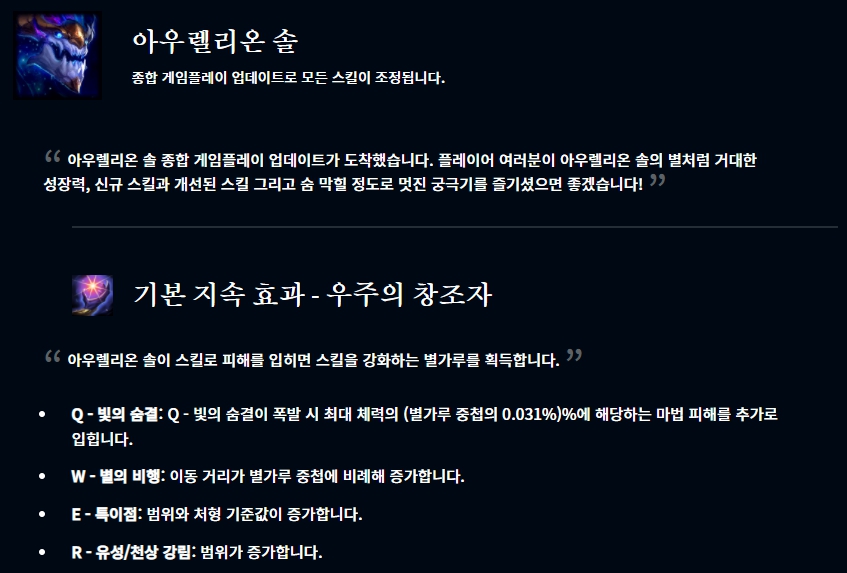 아우솔이 리워크되었는데, 과연 실제 협곡에서는 어떤 평가를 받게될지 궁금합니다.