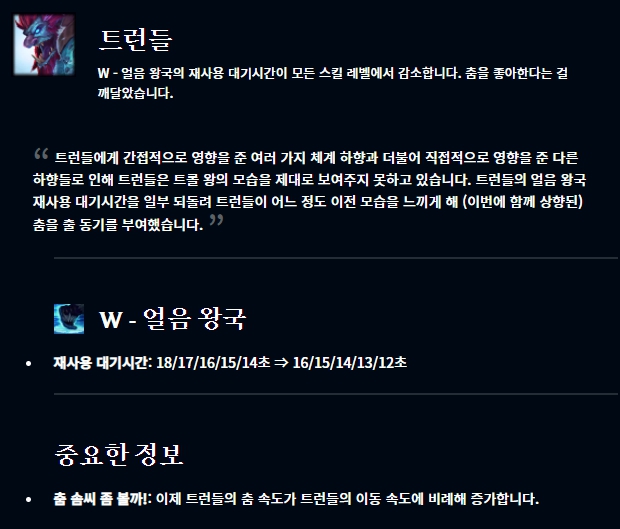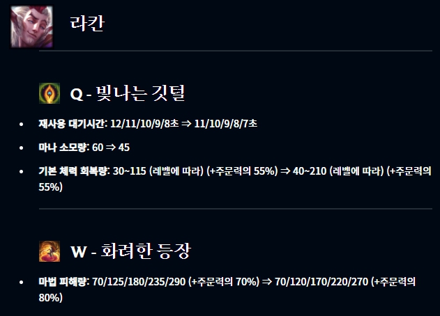 알리스타 브라움 자르반 케일 케인 르블랑 노틸러스 파이크 라칸 쓰레쉬 트런들이 버프되었습니다.