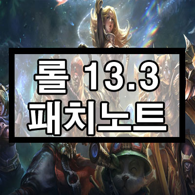 이번 시간에 알아볼 것은 롤 13.3 패치노트입니다. 이번 패치노트는 기존 일정들과 다르게 2월 9일 목요일 아침에 패치가 진행 및 적용된다는 점, 참고바랍니다. 그러면 과연 13.3 패치노트에서는 어떤 챔피언이 버프, 너프를 받았고, 그 외에는 어떤 점들이 변경되었는지 하나하나 살펴보도록 하겠습니다.