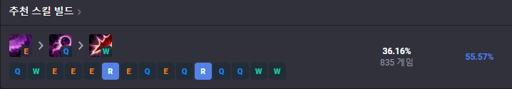 1레벨에는 Q스킬, 2레벨에는 W스킬, 3레벨에는 E스킬을 찍어주고, 4레벨부터는 R-E-Q-W순으로 스킬을 마스터해주시면 됩니다.