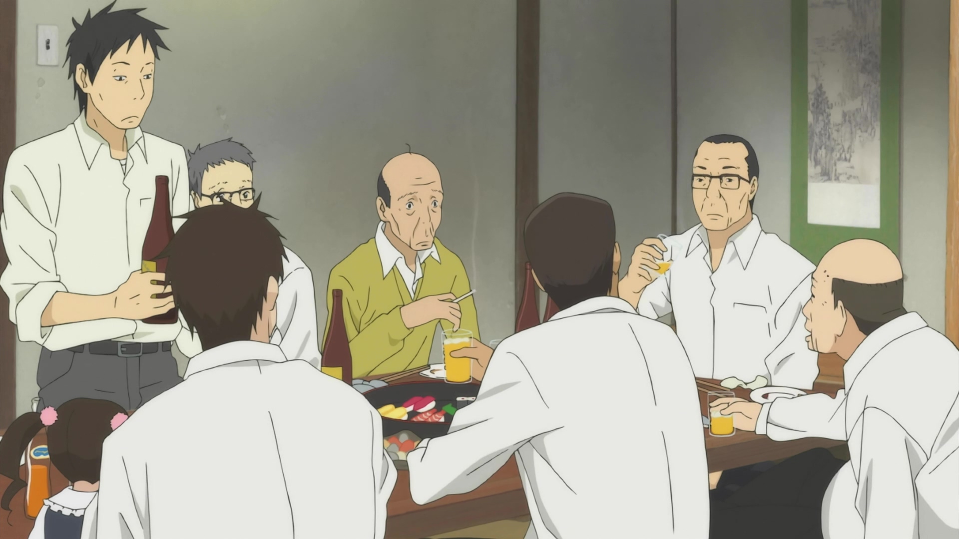 결국 린을 누가 데려가냐를 두고 다들 자신은 안 된다고 말하죠. 그렇게 결론이 나지 않고 시간만 흘러가던 도중, "우선 당장이라도 받아 줄 시설을 찾아보자"라고 말을 하는 한 친척, 이에 다이키치는 갑자기 벌떡 일어납니다.