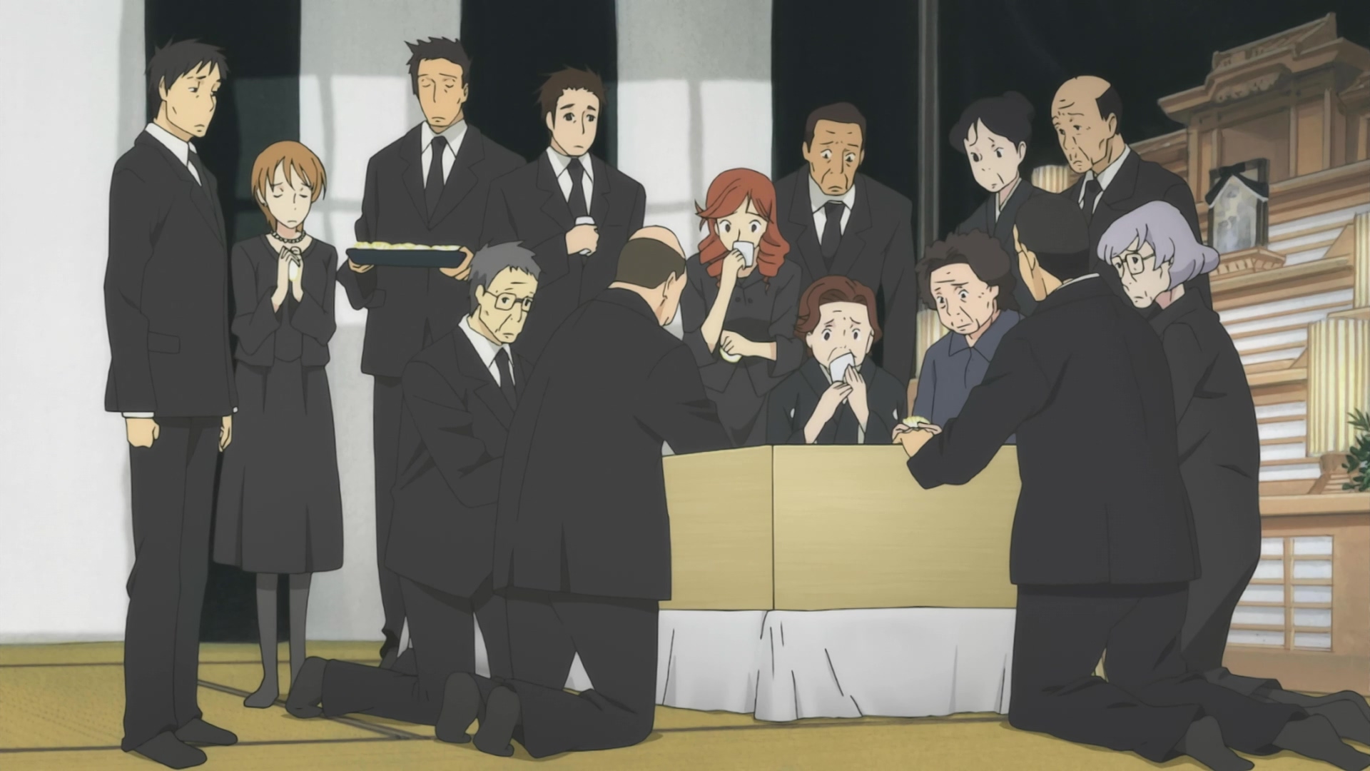 잠에서 깬 주인공 다이키치는 어딘가 나갈 준비를 합니다. 그건 바로 할아버지의 장례식이었죠.