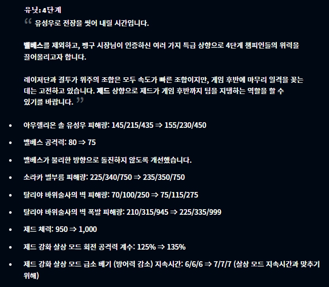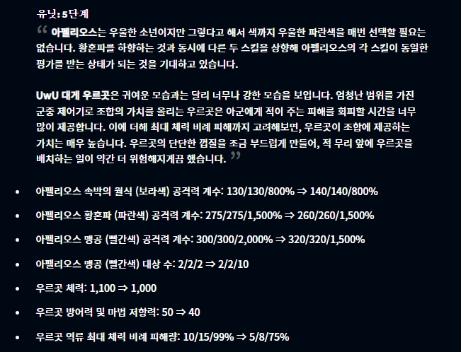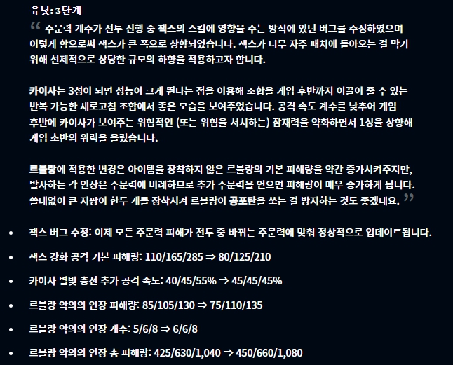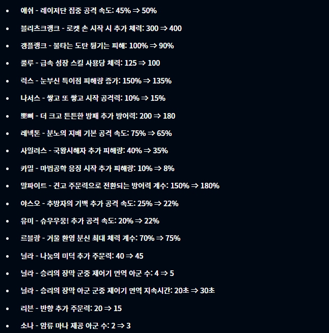 기존 여러 패치들에 비해 챔피언 부분의 변화가 그렇게 큰 편은 아닙니다.