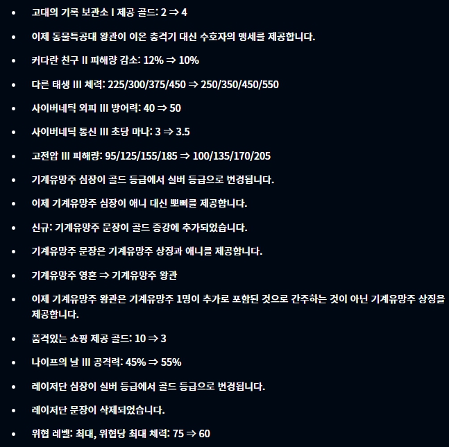 많은 챔피언들의 영웅 증강이 변경되었습니다.
