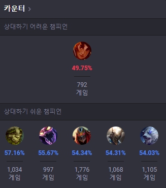 자르반의 카운터 챔피언은 탈리야로 집계되었으며, 상대하기 쉬운 챔피언은 아이번, 스카너, 제드, 판테온, 볼리베어로 집계되었습니다.