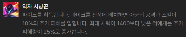 레이저단 해커 워윅덱에 어울리는 영웅 증강체는 양떼도륙(레넥톤), 수당(파이크), 약자 사냥꾼(파이크), 빅데이터(워윅), 포식(워윅)입니다.