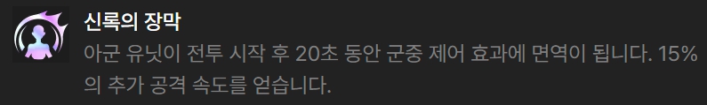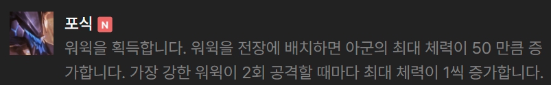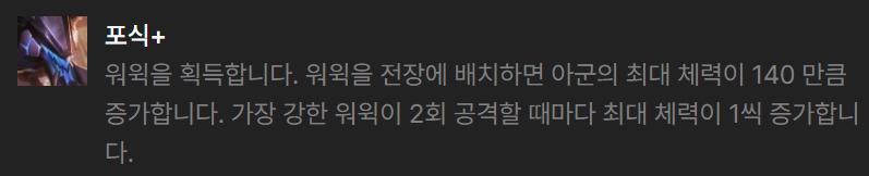 레이저단, 해커 관련 증강체를 가장 추천드리며, 그 외에 전투형 증강체로는 워윅의 피흡을 돕는 증강체나 플래티넘 증강체에서 신록의 장막을 골라 더욱 안정적인 전투를 가능하게 합니다.