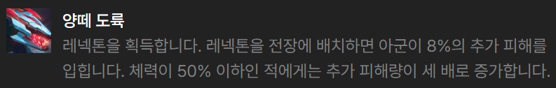 덱을 구성하는 챔피언은 레넥톤, 애쉬, 야스오, 파이크, 르블랑, 쉔, 워윅, 모데카이저입니다.