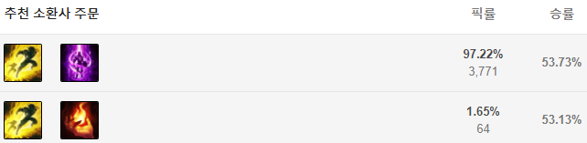 서폿이였다면 점화나 탈진을 주로 들겠지만 탑 룰루의 경우에는 점멸과 텔레포트를 들어줍니다. 탑 룰루를 픽한 것 자체가 하체 라인에 힘을 더 실어주겠다는 느낌이라 라인전은 너무 무리하게 킬을 따려고 하지 않은채로 버티면서 탑 텔레포트 각을 잡아줘서 바텀을 터뜨려주면 됩니다.