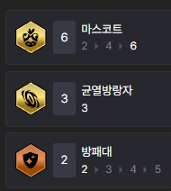 특성 역시 굉장히 간단하게 마스코트(6), 균열방랑자(3), 방패대(2)가 끝입니다.