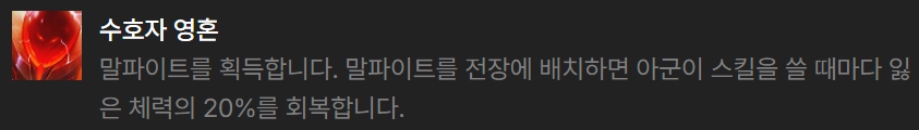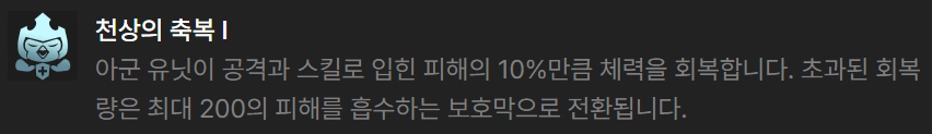 그 외 증강체들로는 천상의 축복, 재생의 바람, 사냥의 전율, 마스코트 심장, 원형의 원칙낫 등이 있습니다.