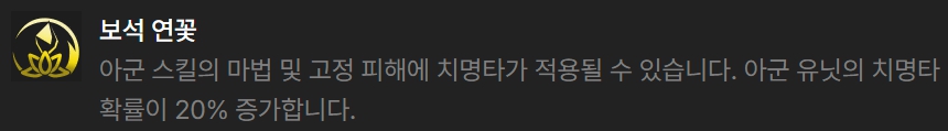 그 외 증강체들로는 천상의 축복, 재생의 바람, 사냥의 전율, 마스코트 심장, 원형의 원칙낫 등이 있습니다.