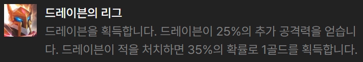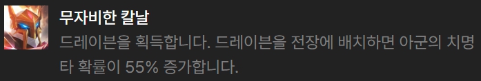 영웅 증강체로는 드레이븐의 리그(드레이븐), 무자비한 칼날(드레이븐)을 추천드립니다.